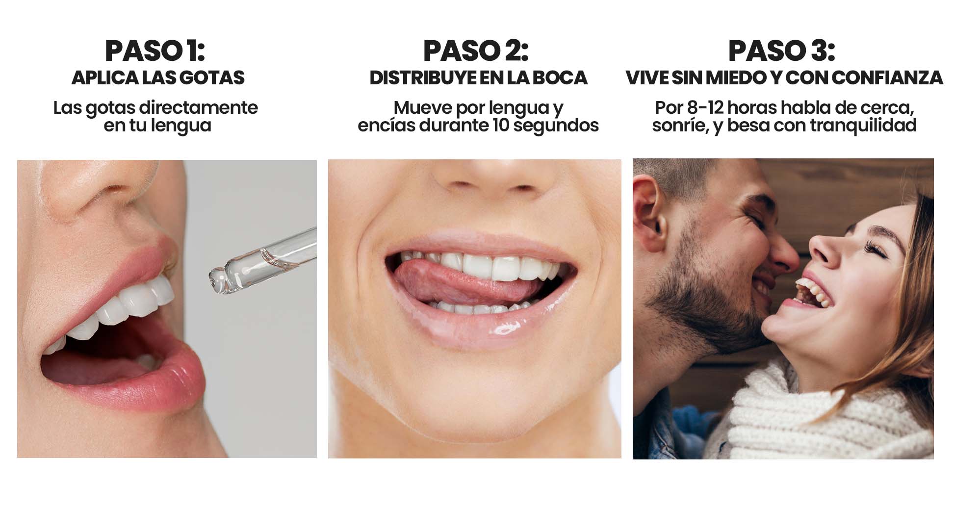 Las únicas gotas contra el mal aliento diseñadas con ingredientes antibacterianos para eliminar las bacterias, recuperar la intimidad y dejar de vivir con inseguridad.