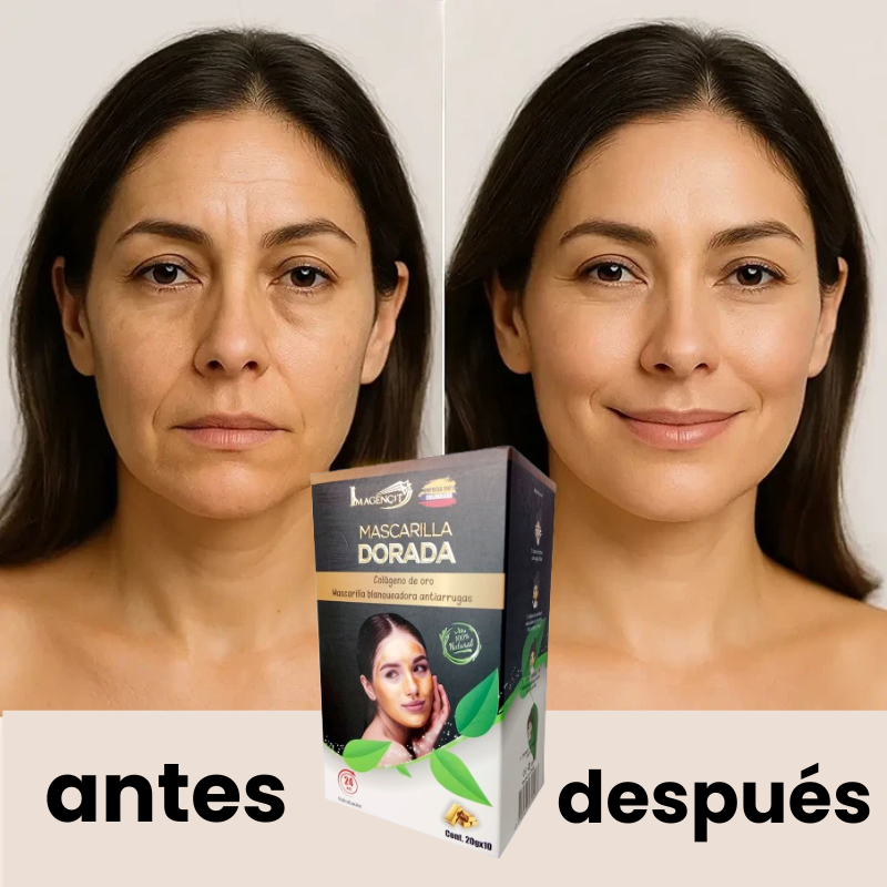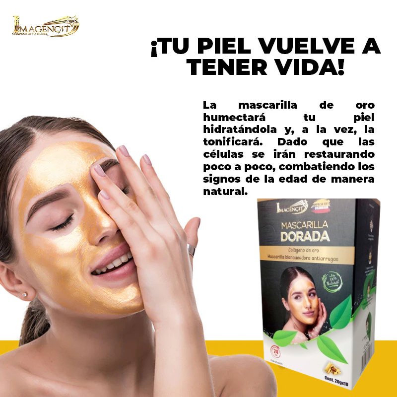 ¿Quieres lucir una piel radiante, joven y libre de imperfecciones? la mascarilla dorada con colágeno que rejuvenece, hidrata y da luminosidad a tu piel al instante