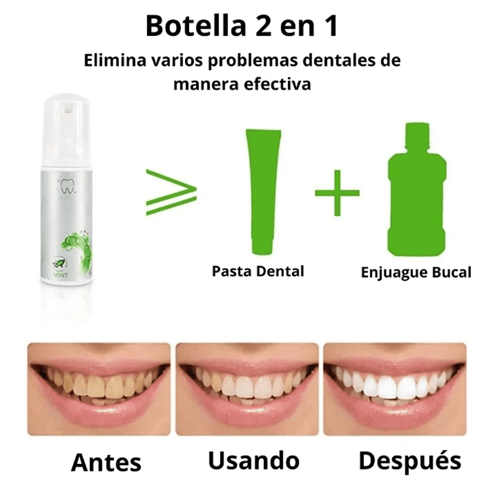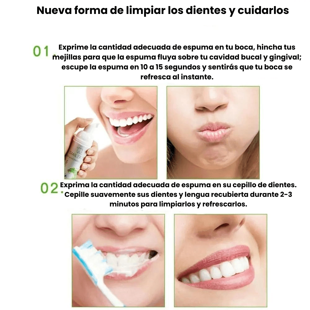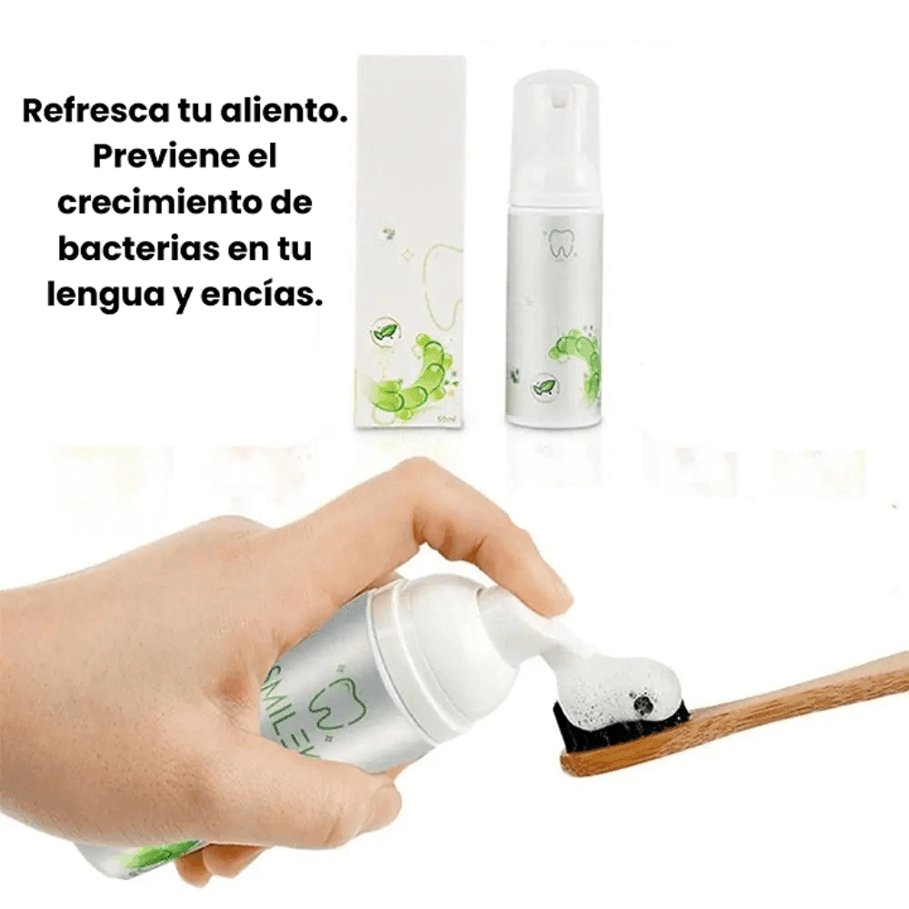 Esta innovadora espuma no solo elimina eficazmente las manchas de té, tabaco y otros tipos, sino que también penetra en las encías para una limpieza profunda que promueve la salud oral.